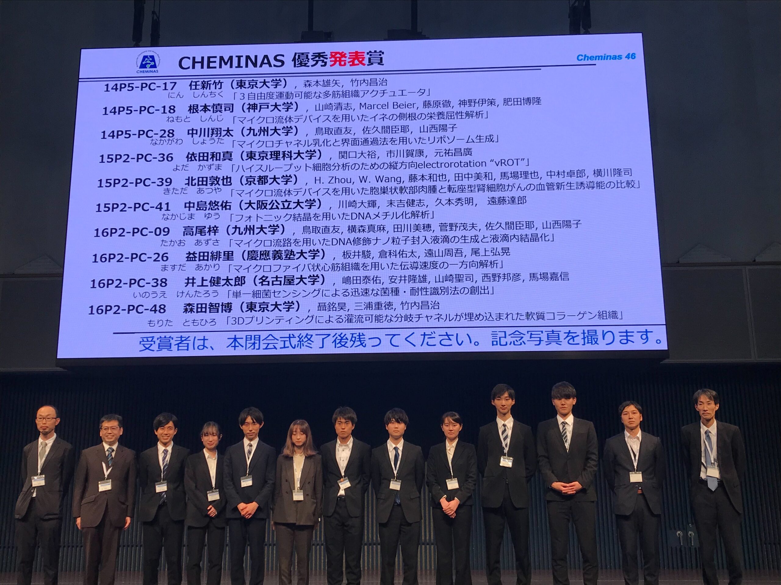 Cheminas46にてM2の高尾さんとM1の中川君が優秀発表賞を受賞しました!
