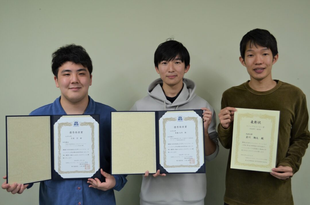 化学とマイクロ・ナノシステム学会 第44回研究会にて、M2の岩川君、M1の後藤君、B4の定道君が表彰されました。